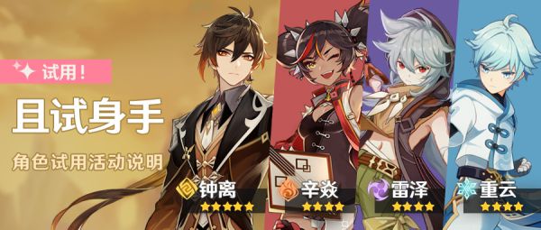 旅行者可以使用包含试用角色的固定阵容进入指定的关卡进行体验,挑战成功后即可获得对应奖励!