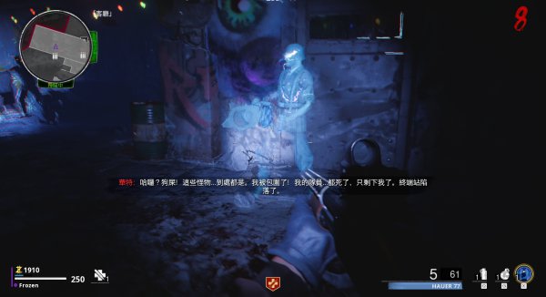 ①首先组装以太静之后,去客厅DIE奇迹武器门口按f。可以看到一个少年生前的影像,原来他是怕死把自己关在门里边等待救援…