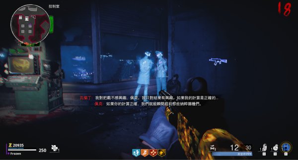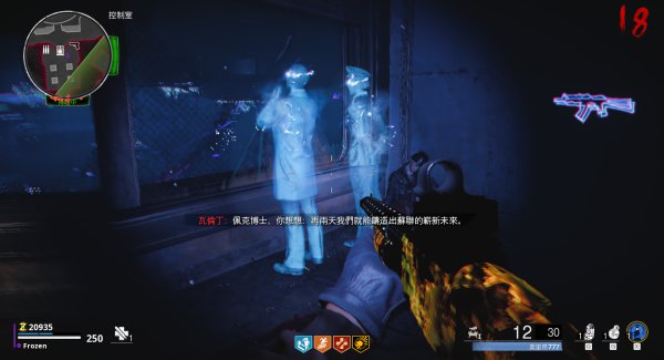 ⑥完成四把DIE充能任务后,电脑出现净化图标。直接来到医疗室饮料机斜对角处,按f再次进入黑洞。然后千万不要互动脑袋顶上的小偷,为什么呢?我们要去找新的幽魂,就是坠机现场购买蓝喷的后面,对着大树按f。