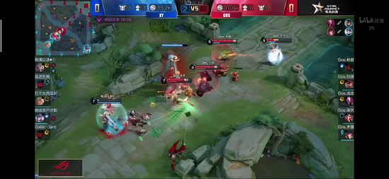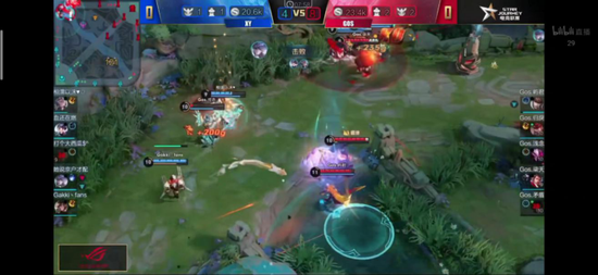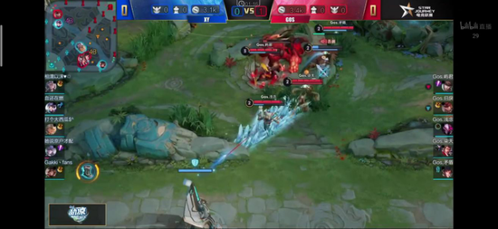 考虑到城市赛区数量较多,赛点分布广泛,直播平台无法覆盖所有的比赛,为此主办方随机转播了几个线下门店的赛事情况。本次王者荣耀项目的比赛选择了XY战队与GOS战队进行实况解说。