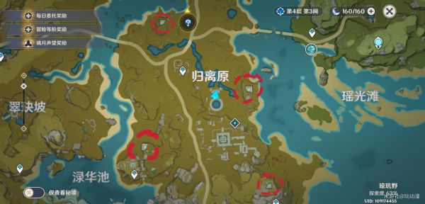 找完5个石碑,就是5个圆形石盘,要先激活下图4个,第五个在圆形水池,位置如图