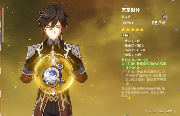 这时可能又要有小可爱要问了 如果我有优秀副词条的攻击沙漏是不是可以给钟离装了 在这里我还是不建议给钟离 如果你把这个沙漏放在主c身上得到的收益会更多 如果你有一堆好的沙漏就当我没有说。