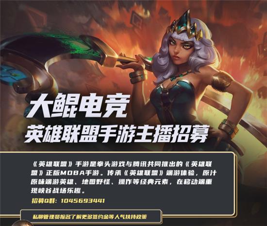 前不久虎牙平台的知名公会大鲲电竞就发布一张lol手游主播招募海报。其中的段位要求和划分十分详细,而且对应的奖励也都十分明了。