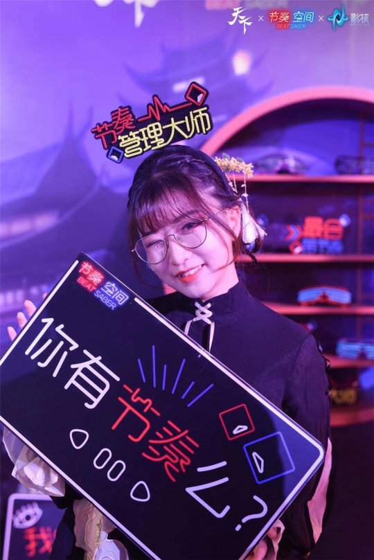 律动不止,焕新体验 在弈剑听雨阁VR斩妖台参与挑战的同时,《节奏空间》为少侠们准备的酷炫头箍、荧光眼镜等周边,也点燃了互动区的火热氛围。