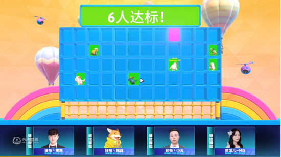 首先登场的四名“糖糖组”选手:果冻、狗叔、菜可儿、小五都是小有名气的主机游戏主播,四人实力相当上演了一出精彩的技巧大战。第二回合4位选手披荆斩棘共同进入决胜局“蜂窝迷图”。对局中4人都采取了保守的打法,慢慢消耗自己周围的方块,寻找时机给对手制造麻烦,而菜可儿凭借完美的节奏和地形优势,轻松拿下了这一局的胜利,积分暂时领先。