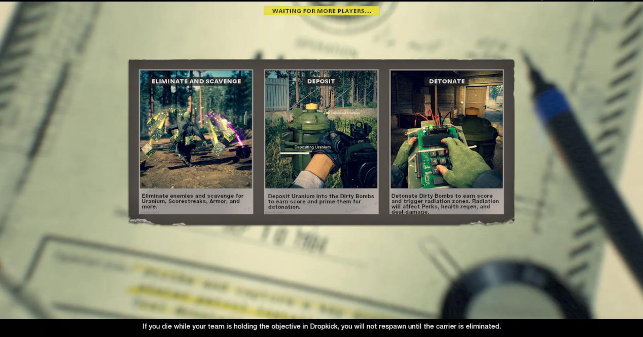 而在之前官方推特公布的《使命召唤17》更新路线中,动视和Treyacrch计划在《使命召唤17》第一赛季中着重于“多人游戏地图和模式”。而其提供的图像中,弗兰克·伍兹正手提公文包并手持手枪作战,这很可能就是“Dropkick”模式中目标携带者的限制条件。相信在这次更新后,这个神秘的模式或许就会和大家见面。