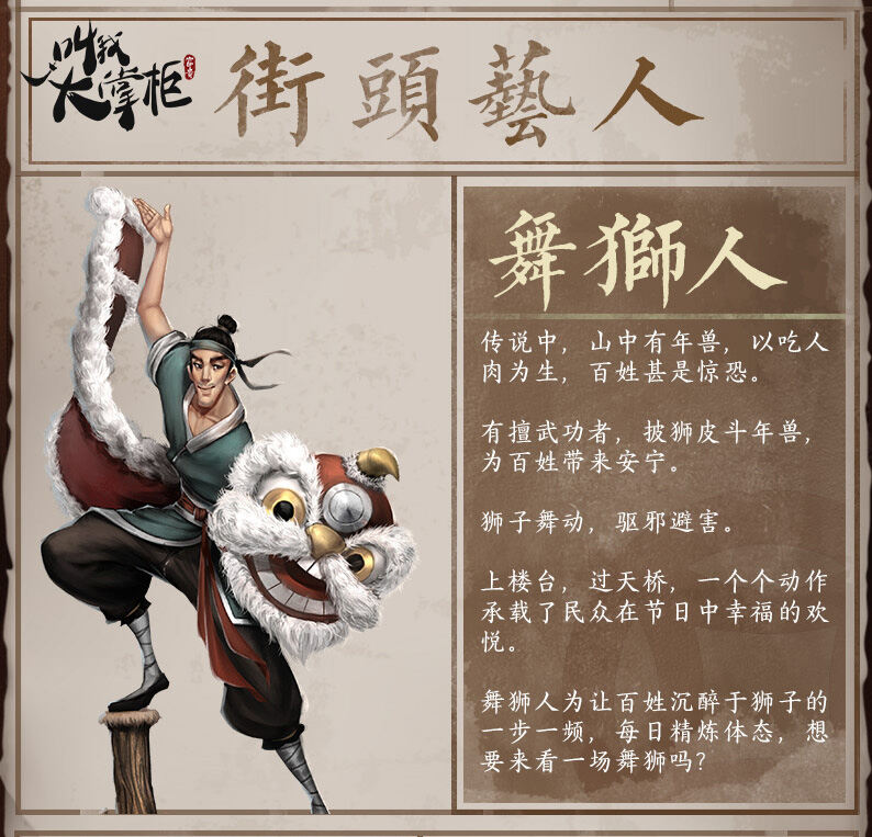 汴梁城的舞狮人,那可不是一般人,早年间传说城郊狮子岭有怪物,以吃人肉为生,可是吓人。开封府尹招募一些武艺高强的壮士,披狮皮与其相斗三日将妖邪伏诛,这才换来汴梁安宁。后来百姓感恩,每逢大事便以舞狮为贺,驱邪避害,相当威风。你看那舞狮人,个个武艺不凡,那可是每日精炼体态一点一滴而成。