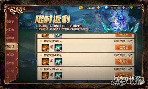 活动期间,充值相应金额,不仅可在魂灵返利中领取奖励,也可在限时返利活动中领取其他奖励哦!
