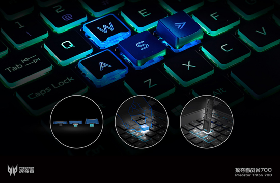 作为划时代的超级旗舰,2020款掠夺者战斧700的键盘同样令人惊艳。下拉式键盘的出现,也预示着战斧700在键盘上的创举远不止极刃模式。全球首创线性压感键盘:WASD四个常用游戏按键支持256级线性触发反馈,可配合内部软件实现按键的压力感应——简单来说,就是曾经只能在主机游戏手柄上才能实现的摇杆级别操作,如今在战斧700上同样得到实现。在有航空操作杆、油门、人物奔跑的游戏中,战斧700的线性压感键盘将给你极度精准的操作空间,展现你王者般的微操技术,体验不同于其他任何键盘的全新触感。这种以往需要手柄才能体验的线性触发技术,如今已被Acer带入到PC世界,待你亲身体验。