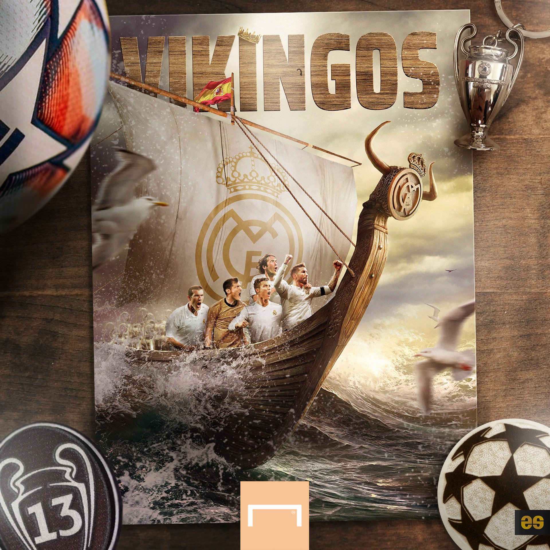 皇马所在的小组B组原本出线形势扑朔迷离,本场比赛凭借本泽马的两粒进球,皇马顺利拿下了晋级的席位。GOAL也在赛后制作了一张海报,海报中银河战舰的五代舵手(齐达内、卡西利亚斯、劳尔、C罗、拉莫斯)带领皇马乘风破浪,奋勇前进,向欧冠冠军奖杯发起冲击。
