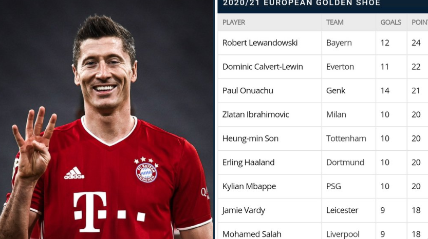 虎扑12月10日讯 在欧洲金靴奖的排名上,拜仁慕尼黑前锋莱万仍然排名第一,埃弗顿前锋勒温排名第二。在德甲10轮比赛过后,莱万进了12球,排名射手榜榜首埃弗顿射手勒温领衔英超射手榜。