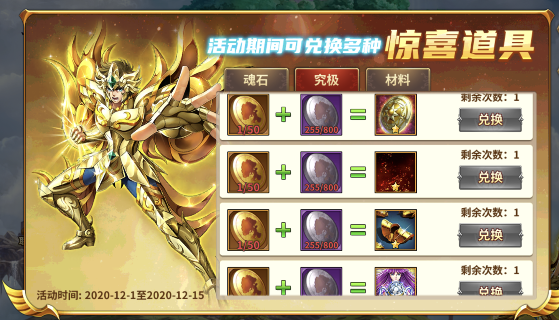 暌违许久,《圣斗士星矢:重生》的联动活动终于在12月1日与玩家正式见面了。在12月1日到12月15日的两个星期时间内开启的是本次联动活动的第一弹,至于具体的联动内容有哪些,就让我们来整理总结一下吧。