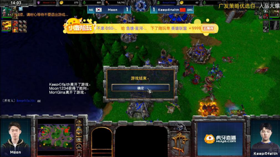 而Moon和Keep的对局被称为年龄相差最悬殊的一局,月魔Moon在这次的BO3也保持了他一贯的“整活儿”思路,第一局使用单KOG学2级光环的打法试图爆女猎速6与ORC跑家,但小将Keep利用小Y高等级蛇棒单人防守的同时大部队不断骚扰Moon分矿,完美接下了Moon老师的第一局考试。