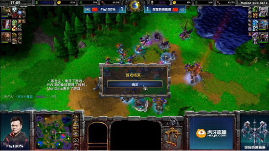 决战时Fly牛头调整好位置,连续3次震荡波对UD部队造成巨额伤害,UD损失惨重,3英雄等级落后打出GG,解说戏称Fly100%为“Fly300%”。