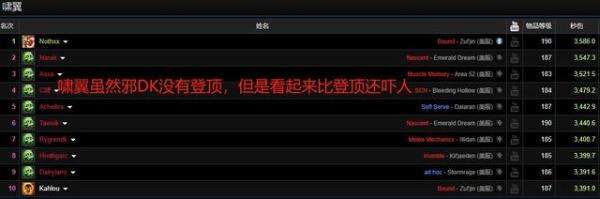 我还记得早在服务开通之前,因为这个版本已经被评价为近战噩梦版,大家应该觉得DK这个轮椅职业一万年,可能连副本都进不了。但是这样的数据出来之后,不仅DK不会再被劝退,就连在集合石上跟风的野团团长也会看到邪恶的DK,并希望团进来。