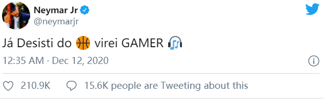 而后,内马尔又发布了一条动态:“我已经不打篮球了,现在我要去玩电竞了。”