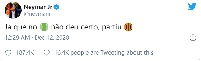 内马尔所发的第一条动态中这样写道:“既然打网球打得不行,那我打算去打篮球好了。”
