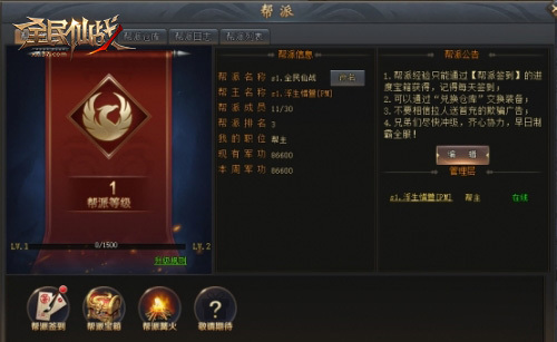 游戏中,玩家脚色达到肯定等级便可开启帮派别统。抉择创立或退出一个帮会,与兄弟们独特倒退权力,所属帮会越弱小享用的福利特权与属性加成也就越多。《全平易近仙战》的帮会零碎给玩家提供了一个即时无效的交互平台,正在这里不只能交友摰友,一同共闯九天十地,还能与各人同床异梦登顶巅峰。退出热情四溢的帮会战、皇城抢夺战或跨服营垒战,多元化战役乐趣让你高兴随心所欲。