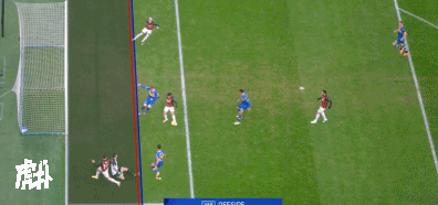 第90分钟,特奥禁区内接到防守球员解围出来的球后左脚抽射,皮球钻入球门死角,2-2!AC米兰扳平比分。