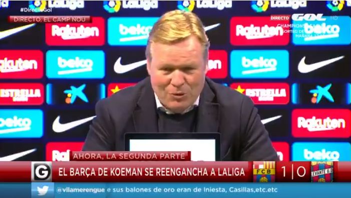 巴萨主帅科曼出席了与莱万特的赛后新闻发布会