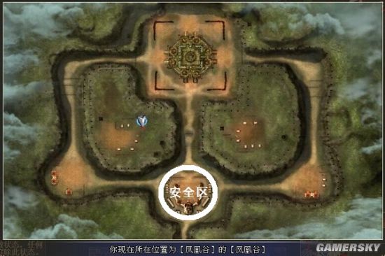 凤凰谷共分为两个区域:交战区与安全区。入口处的营地为安全区和复活点。死亡后并未选择原地复活的玩家将会在入口营地的安全区复活。为了避免出现恶意屠杀复活点的情况,安全区特设多个出口。