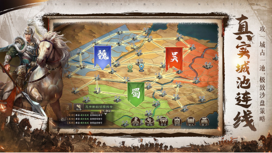 此外,《三国志威力无双》深谙三国SLG游戏玩家的心理需求,在游戏中纳入“不止一封战报”、 “不连地块,极速城战”、“真实城池连线,极致沙盘策略”等玩法,从三国还原真实地图到零氪解锁名将,极力为玩家打造三国乱世中的极致沙盘策略,还原真实战场中的战争策略体验。