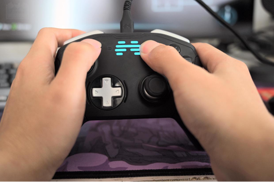 同时,手柄的背后还增加了4个多功能自定义背键,让闲置的手指也可以一同参与操作。