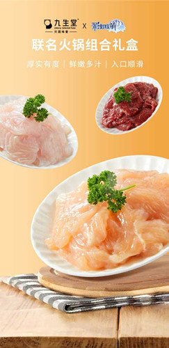 九生堂X彩虹联萌联名款暖锅组合礼盒蕴含牛肉片一盒、鸡肉片一盒和鱼肉片一盒。严选新颖肉类作为次要质料,辅以各味香辛料,匠心配比,打造的别样甘旨体验。充沛入味的肉片,鲜嫩爽滑,久煮没有老,让你一吃就爱上!