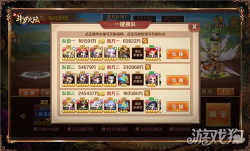 如图对面的总战力高达58亿,PVP也高出我方很多,但是我们却可以轻松克敌:原因就在于对面有一队战力是33亿的,绕过这一队即可轻松取胜。