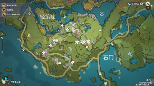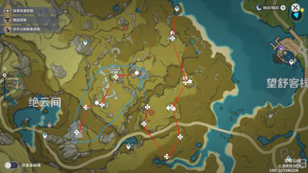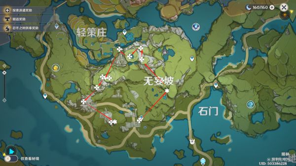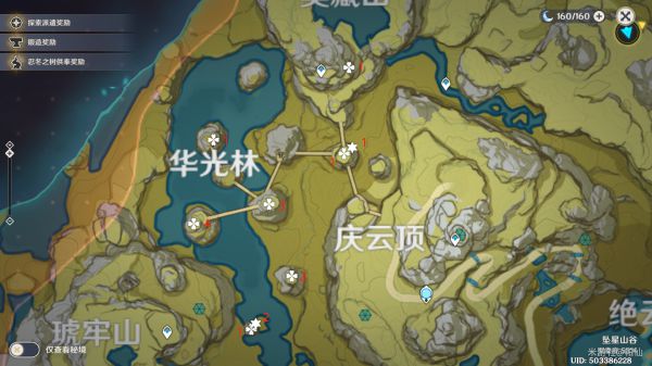 注记:把点位全跑一遍可以拿到50朵清心和20个琉璃袋,数量上还是很足的。可以空余时间肝一两次,也就不太缺了。这个攻略本意以收集清心为主,因为发现收集清心路上有一些琉璃袋,所以加入了路线中,如果只是想收集清心则路线还可以简单一些。如果想收集琉璃袋最好找更全的路线帖子。嫌麻烦可以自由忽略掉一些难爬且数量少的点位。从0到90级只需要168的突破材料,坚持一段时间不会很缺的。