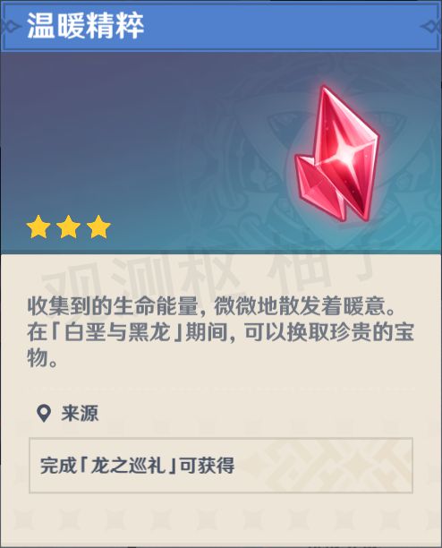 活动第三阶段开启之后,雪山地区会在随机的位置出现龙之巡礼,旅行者可以开启并完成龙之巡礼挑战后获得「温暖精粹」。完成8次与16次挑战即可完成任务。