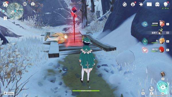 挑战开启之后,会在附近生成暴风雪。当旅行者离开温暖仙灵进入暴风雪的范围后,会快速积累严寒条并扣血。旅行者在挑战进行的时候尽量不要将魔物击出范围外或者将魔物击退至离温暖仙灵较远处。