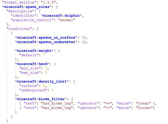 A:放在spawn_rules里。比如海豚的生成规则,如下图所示: