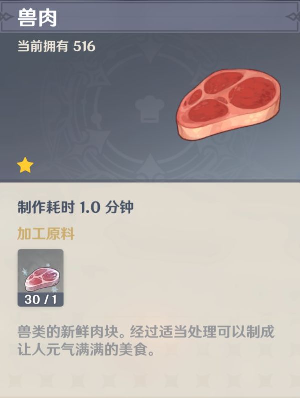 【冷鲜肉】是烹饪【稠汁蔬菜炖肉】所需材料之一,也可以加工成【兽肉】。