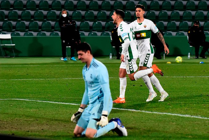 虎扑12月30日讯 西甲联赛中,皇家马德里客场对阵埃尔切。下半场第93分钟,埃尔切获得任意球机会,库尔图瓦飞身神扑,化解了埃尔切的绝杀机会。