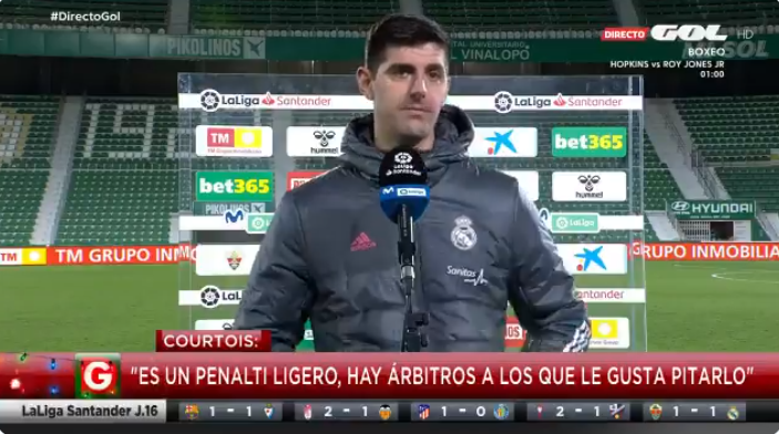 虎扑12月31日讯 皇马门将库尔图瓦在与埃尔切赛后接受了Movistar+的采访