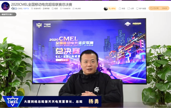 大唐网络总裁、天天电竞董事长、总裁杨勇作为主办方代表致辞,他表示CMEL积极疫情背景下探索电竞赛事的新模式,通过“轻聚集”的选拔赛形式和应用5G边缘计算技术的云电竞平台与设备,为CMEL全年赛事的公平性、观赏性、选手体验及人员防疫安全提供了有力保障,期待科技发展带动电竞赛事完成新一轮变革。