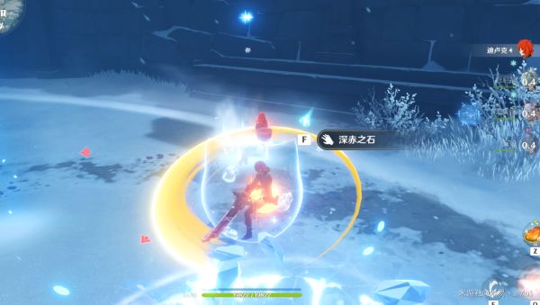 当有蓝色的任务提示标的时候一定要找好方向,把这个冰块打破,会形成一个屏障,在屏障内可免疫伤害。