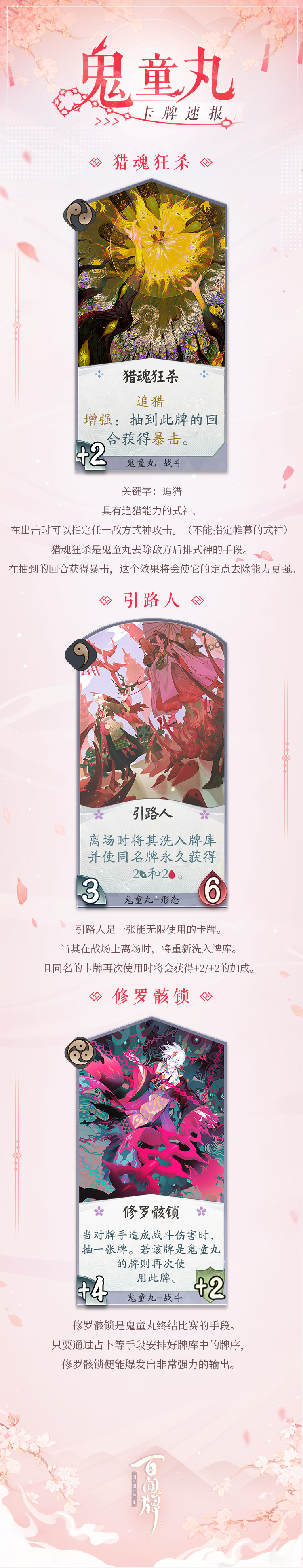 局部卡牌正在回合内被抽到还能取得增益成果!送上式神卡面以及卡牌谍报,鬼童丸的对局捕猎游戏行将开展↓↓