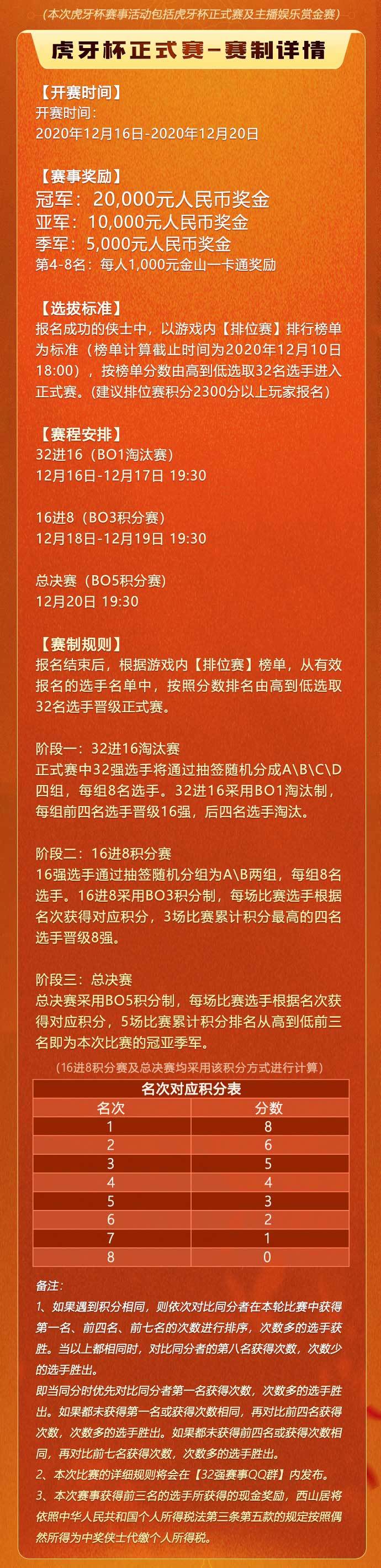 2020年12月20日正式赛的总决赛完结后,年夜唐棋圣依据其积分排名,可取得相应处分。赛事中夺患上第一位还可斩获20,000元现金年夜奖!