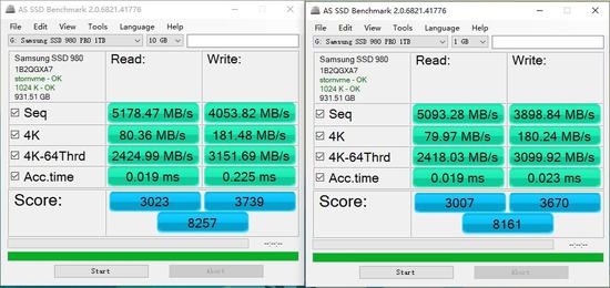 不过在对512Bit大小的文件进行读写时,三星980PRO 1TB与影驰HOF 2TB之间没有太过明显的差异。