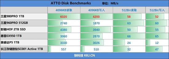 而市面上其他同价位的PCIe 4.0 SSD,缓外写入速度最高只能达到三星980PRO 1TB SSD的一半,顶级的PCIe 3.0 SSD比如惠普EX 950 1TB是540MB/s同样远远不及三星980PRO 1TB SSD。
