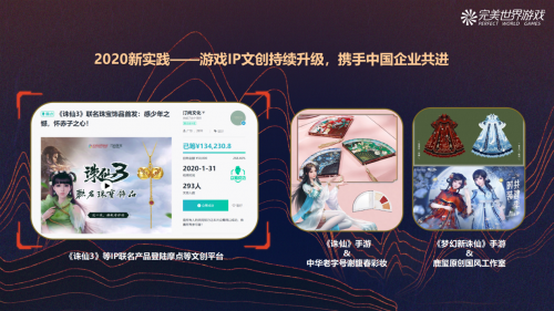 游戏IP文创继续晋级,携手中国企业共进。2020年《诛仙》手游与中华老字号谢馥春协作联名款彩妆,并正在摩点平台发动众筹流动,取得了玩家的宽泛支持;新产物《梦境新诛仙》联结鹿玺原创国风工作室发动古装共建季,以游戏国风门派为原型,制造游戏古装与定制服装。完满世界游戏在以多种游戏IP与文创产物交融形式,携手实体经济探究文创产物将来倒退。