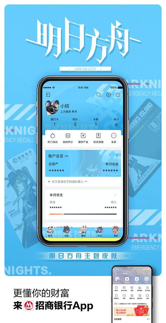 作为本次联动了另一方「招商银行」也配合卡片的发行上架了两款APP皮肤,还有四条游戏内音效的提示音噢!让持卡玩家进入APP时获得更多的沉浸感与代入感。