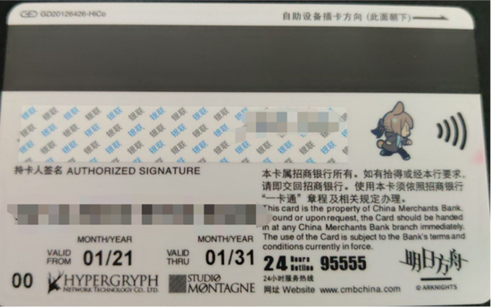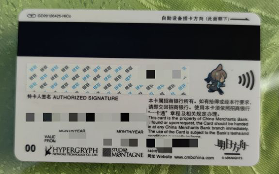 卡的背面也展现出了更多的细节,第一眼看到的是在卡的感应区域出现了一个Q版的阿米娅提示博士正确的感应和插卡方向。其次下方的字体也是标准的明日方舟美术风格「HYPERGRYPH」「STUDIO MONTAGE」这一波不得不说细节拉满。