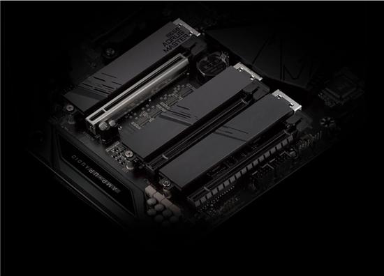硬盘支持方面,技嘉B550 AORUS MASTER主板前瞻性地采用了3组M.2 SSD PCI-E 4.0插槽设计,同时支持3个NVME固态硬盘搭建RAID 0磁盘阵列。对存储有高标准要求的用户,完全可以通过该主板来获得更大的容量或更高的读写性能体验。此外,该主板还搭配了三个M.2 SSD散热装甲,确保硬盘在满载使用时能降低其的工作温度,提升工作效率以及系统稳定性。