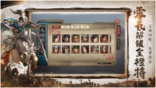 在《三国志威力无双》游戏中所有武将均可分解回收成信物,玩家在酒肆中可赠送心仪的武将信物,以结交好感的方式轻松获取心仪名将,实现零氪解锁全橙将。