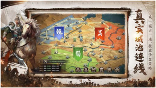 除了上面提及的三点,《三国志威力无双》还融合了古代战争中“攻一城占一池“的军事理念,首创城池连线玩法,欲取洛阳,必先占虎牢关!