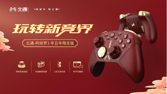 新春临近,日前北通正式推出阿修罗3辛丑年限定版,在保留阿修罗3游戏手柄功能及手感的基础上,新品机身采用檀红色搭配金色,绘制金牛仰蹄图案和中国传统吉祥元素,祝愿玩家朋友们2021平安喜乐,牛气冲天。