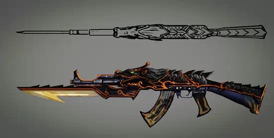 传的沸沸扬扬王者武器,就是大家最为热爱的龙型版本,相传黑龙与最强王者战士签订契约,整个枪身被一条桀骜的黑龙缠绕,幽绿色的龙眼彰显王者霸气。附身黑龙的枪身具有极高的战斗属性,可以说,王者战士在战斗中与黑龙协同作战,只看你能否驾驭它。